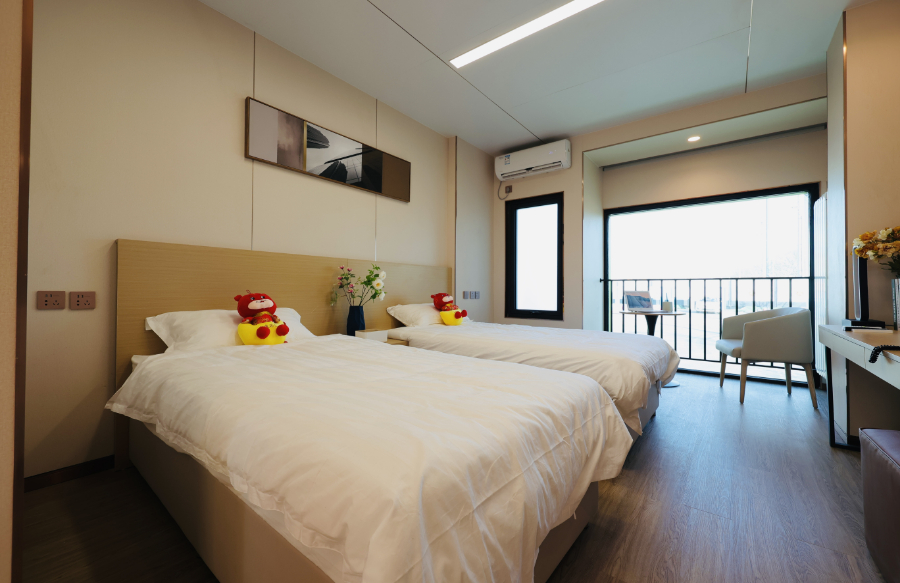 走出展馆,中建科技设计建造的最高、最大模块化建筑群——北京亦庄蓝领公寓样板间可实地感受:视频对讲、智能电视、空调、灯光、电动窗帘等智能家居设备一应俱全。与传统建造方式比,模块化建造的机电、管线、家具、装饰、幕墙等90%工序在工厂完成预制生产,运到现场直接吊装,可节水节电70%,减少80%的建筑垃圾,可循环材料利用率达到90%,实现绿色建造。