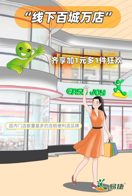 作为国内门店数量最多的连锁便利店品牌,易捷的线下百城万店齐享“加1元多1件”狂欢。