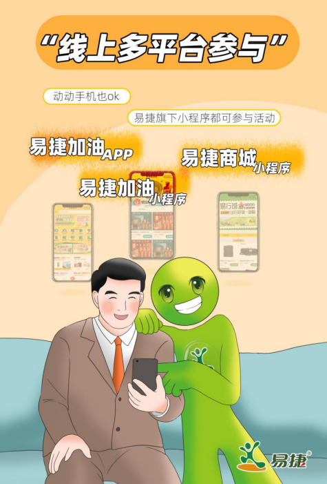 在线上,易捷加油app、易捷商城小程序、易捷加油小程序都可参与活动,动动手机就OK。