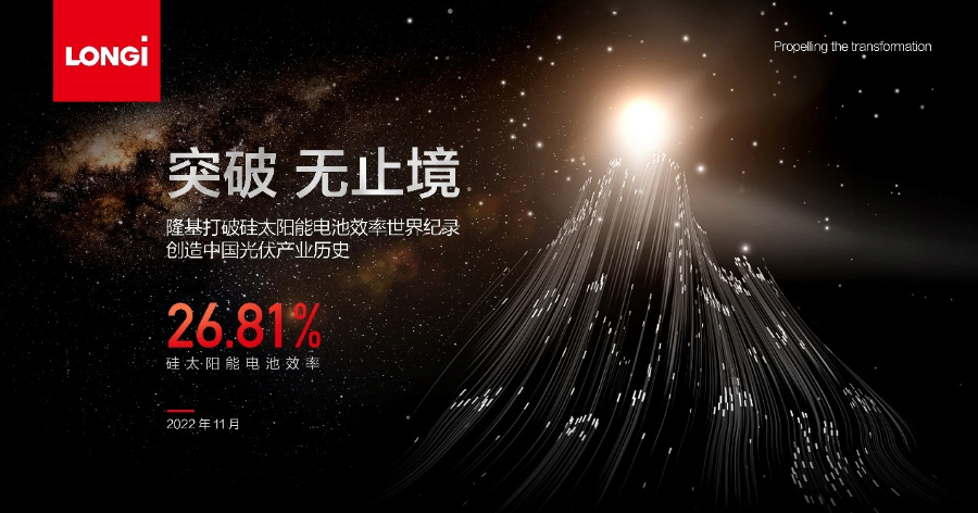 光伏度电成本的不断降低,离不开对电池转化效率的不断追求。2021年至今,隆基绿能已连续12次打破多种电池转化效率的世界纪录。前不久于西安召开的第十六届中国新能源国际博览会暨高峰论坛上,隆基绿能对外发布消息,公司硅异质结光伏电池(HJT)研发取得重大突破:经德国哈梅林太阳能研究所(ISFH)的最新认证报告,隆基绿能自主研发的硅异质结电池转换效率达到26.81%。