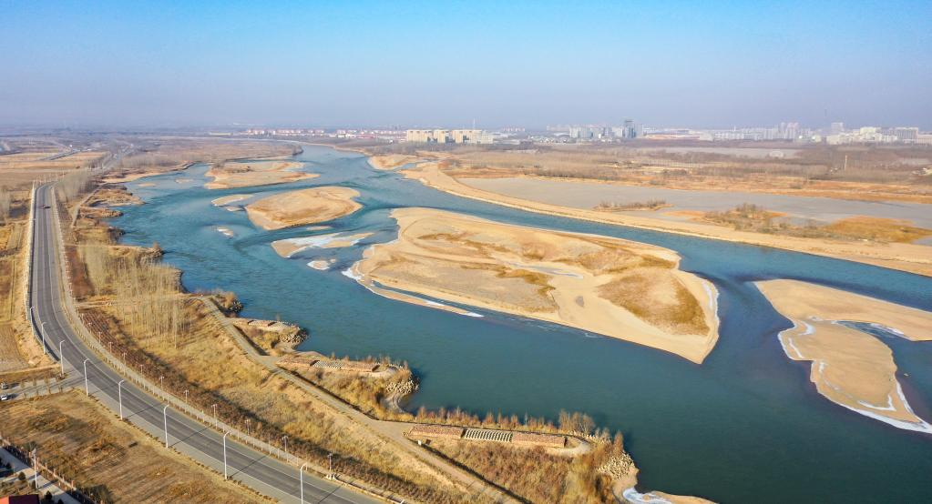 这是2022年12月29日拍摄的位于宁夏中卫市境内的黄河景观(无人机照片)。新华社记者 冯开华 摄