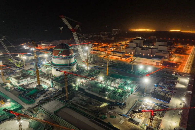 海南昌江核电二期工程3号机组正在吊装内穹顶