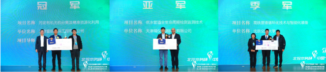 创投大赛中,来自天津壹新环保工程有限公司的污泥有机无机分离及精准资源化利用项目团队获得冠军;天津精仪精测科技有限公司的供水管道全生命周期检测监测技术获得银奖;北京交通大学的高铁废液循环化技术与智能化装备获得铜奖。