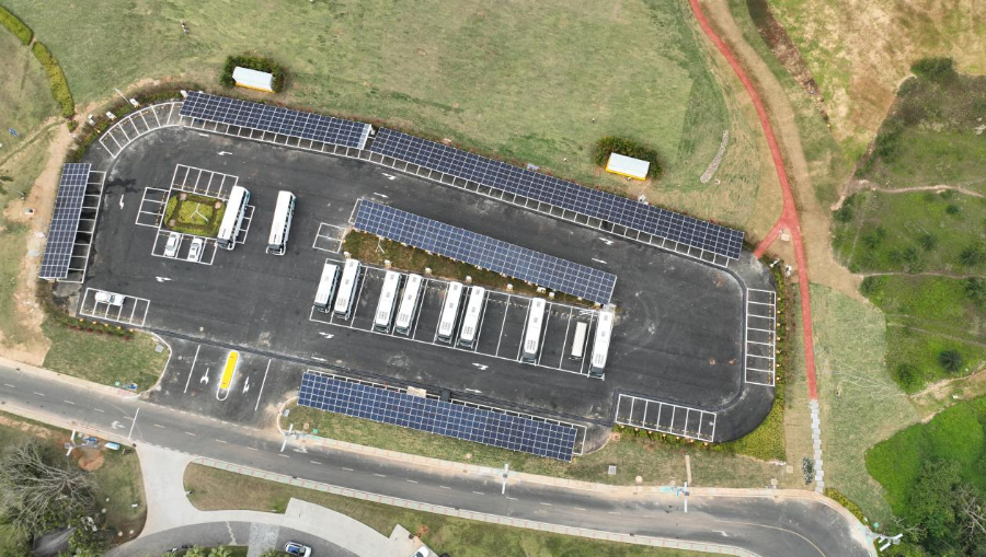采用“隆基隆行”光储充一体化产品建设的光伏车棚,不仅能够给车辆遮阳避雨,同时还可以发电带来收益,实现社会效益和环境效益的双赢。