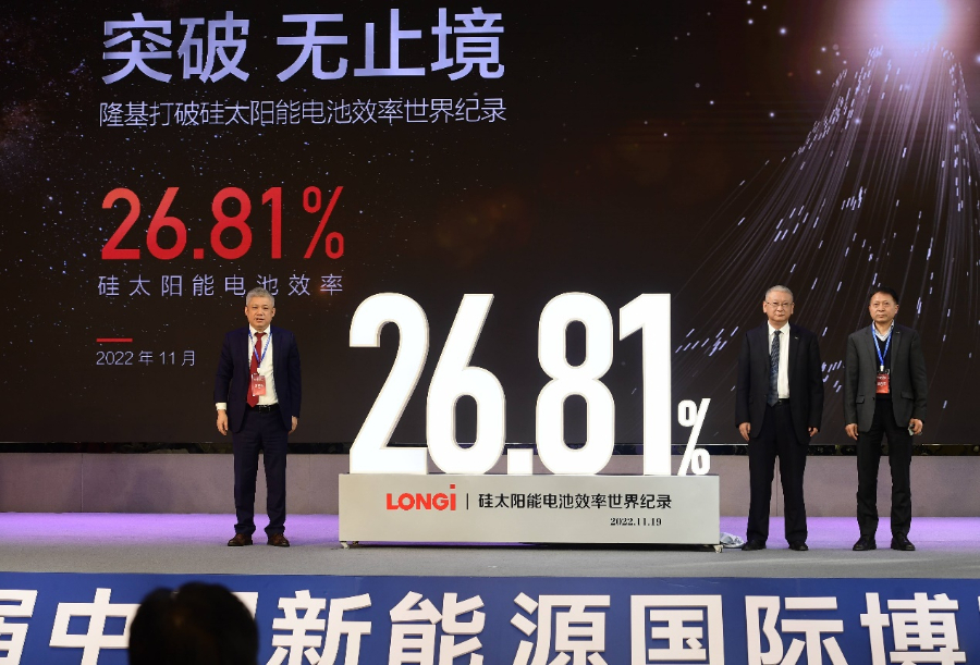 从2021年6月至2022年11月,隆基绿能高效晶硅异质结电池研发团队不断打破并刷新纪录,将电池效率从25.26%提升到26.81%,在一年四个月的时间里,实现了绝对值增加1.55%。电池效率的显著提升,得益于该团队在新的纳米膜层技术上的突破。