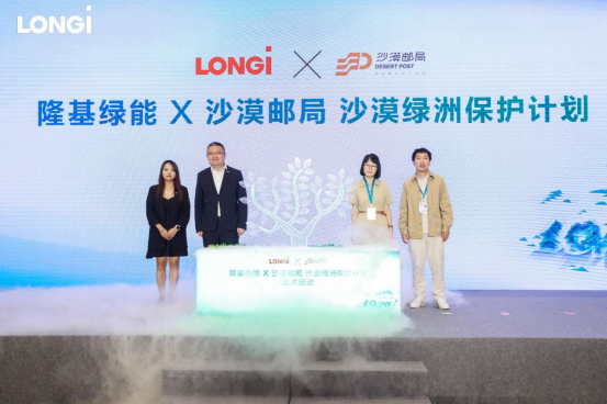 在发布会上,隆基X沙漠邮局“沙漠绿洲保护计划”启动,以隆基可持续发展周参与相关环节的嘉宾之名,在腾格里沙漠腹地种植隆基绿能零碳生态林,每一棵树木都将成为每个嘉宾专属认领的沙漠绿植,可通过线上程序实时查看树木生长情况,整体零碳林将呈LONGi形状。未来隆基绿能将联合沙漠邮局打造全球首个零碳主题邮局,使用隆基高性能光伏产品为沙漠邮局提供源源不断的绿色电力。