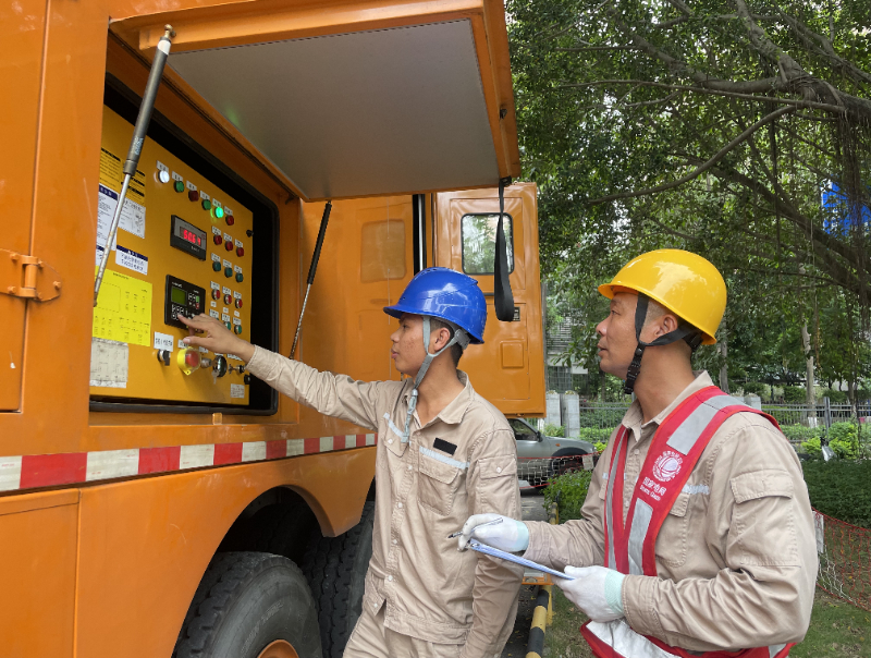 公司非常重视此次作业,该公司不停电作业中心与龙高中心多次到现场勘察、研讨论证,并编制了保供电方案,与专家反复论证中压发电车并网运行原理、操作方法、应急预案等,将整个并网操作过程逐步分解,对每个危险点制订了预防措施,协同供指中心采取调度权下放方式,确保作业现场统一指挥,快速响应,有序开展作业。为保证新方案的顺利实施,作业人员提前一天对整个操作步骤进行模拟演练,确保检修当天同期并网保电顺利进行。当日早7时许,作业人员与保电人员早早到达工作现场,紧张有序地开展各项工作。最终,该项作业共执行7张工作票,减少了停电时户数30时户,发电车发电量近2000kWh,确保周边居民用户“清凉一夏”。