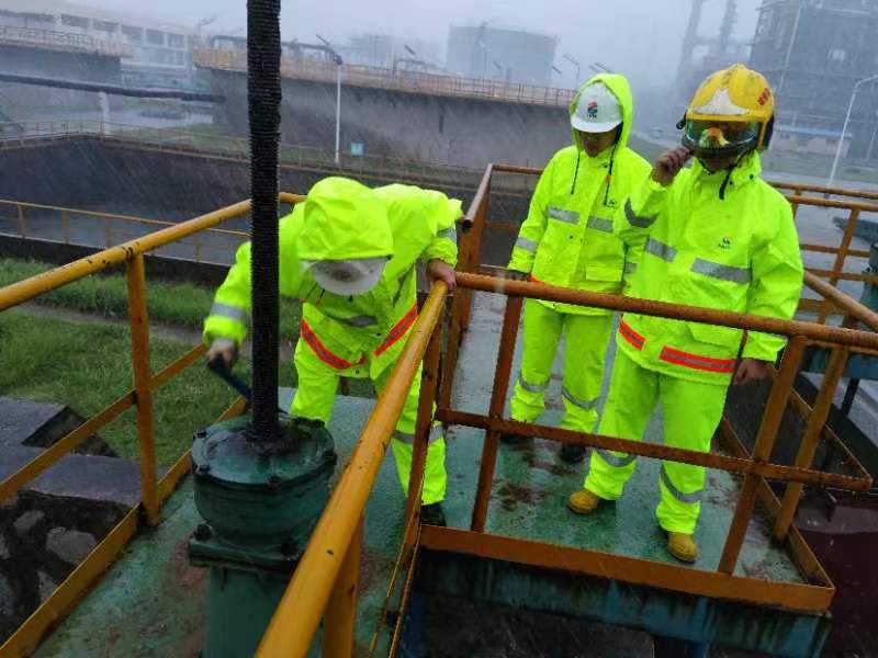 福建古雷石化在台风登陆当天,所有生产管理人员和专业人员坚守岗位,设备维保人员和后勤保障人员提前到位,班组操作人员全部到岗。台风登陆后,操作人员加强巡检,紧盯工艺参数,根据台风暴雨情况及时调整生产,有效保证了装置安全平稳运行。此外,福建商储分公司全面开展库区巡查,加强罐区防火堤排洪阀井检查,及时排查雨水管沟、雨水井堵塞淤积情况。