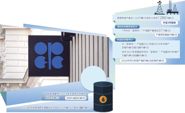 在供给侧,尽管沙特和俄罗斯等持续减产,美国带领的“欧佩克+”以外的产油国增产将持续抵消相关减产努力。美国能源署预计,“欧佩克+”以外的产油国2023年和2024年将增产210万桶/日和120万桶/日,其中2023年美国和其他非“欧佩克+”产油国将分别增产130万桶/日和80万桶/日,2024年将分别增产50万桶/日和70万桶/日。