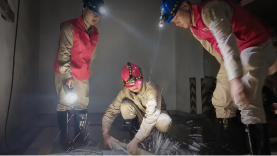 9月6日15时,将乐公司抗击台风“海葵”跨区支援队刚到福州,就接到抢修任务。全体人员,迅速带上装备,赶往10千伏汇城佳源居小区2#楼配电室现场。面对配电房内涝严重的情况,经过磋商,利用排积水时间,组织开展“纸上作业勘察”预演,分析研判电网受损情况,提升灾后抢修复电效率。该配电站房位于小区地下室,由于水浸,站内空气难流通、污垢多、噪声大,加上烘干机连续烘烤产生的热量,整个站房闷热至极,现场工作人员一片繁忙,抽水、检查受损设备……汗水早已湿透了他们的工装。