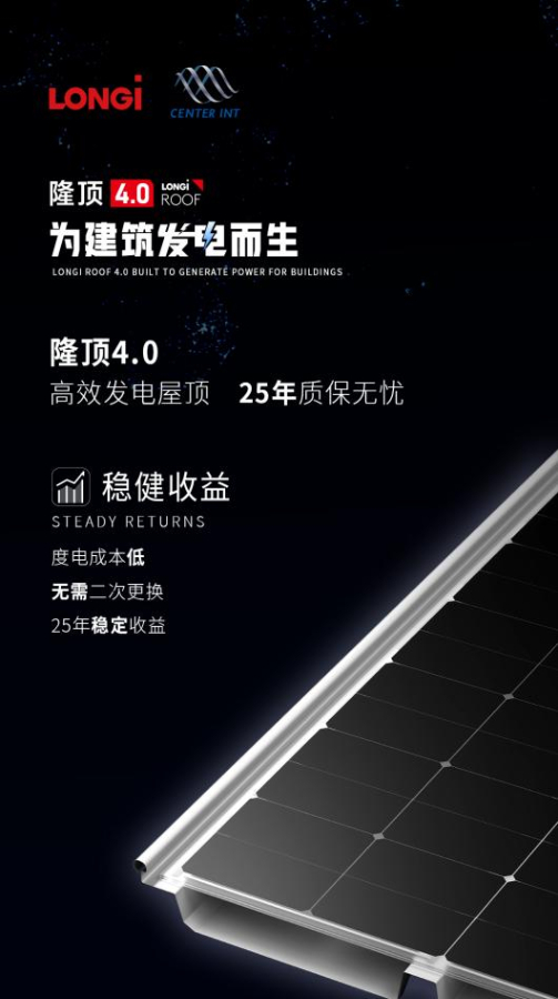 一直以来,建筑都是我国的耗电“大户”。“BIPV作为有效降低我国建筑能耗的方式,大力发展低碳、零碳建筑,对于节能减排、保护环境具有重要的现实意义。”隆基绿能中国政企地区部总裁陈鹏飞介绍说,“隆顶4.0是全球首款搭载BC类电池的BIPV产品,技术的革新也带来产品性能的大幅提升。”