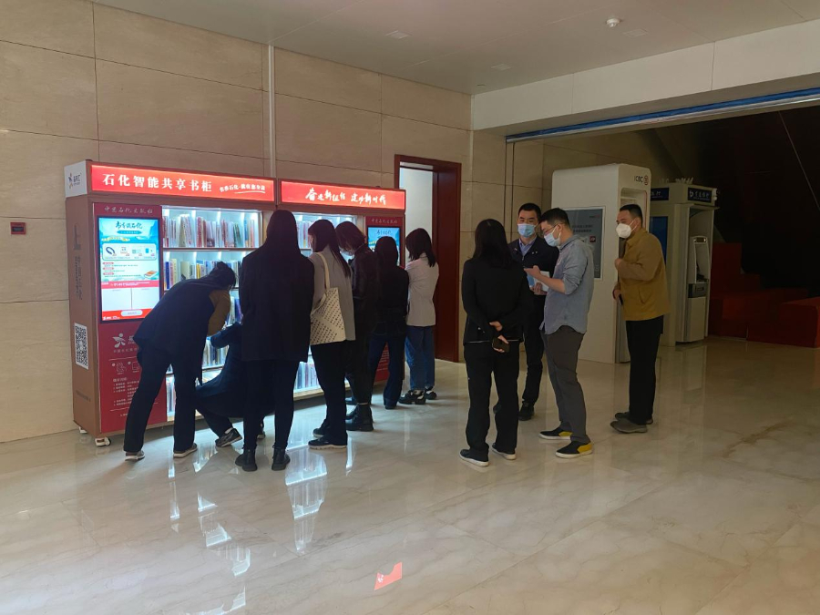中国石化以“倡导全民阅读,建设书香石化”为主题,以提高广大员工科学文化素养、专业技能水平为宗旨,全面实施“书香石化”工程,推进智能共享书柜进企业,截至目前,已有近200台智能书柜走进了几十家企业。