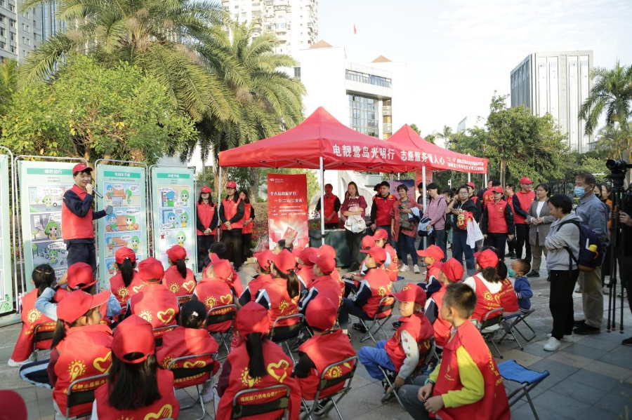 12月2日,厦门供电公司团委牵头,光明志愿服务(后勤)分队、思明中心团支部、调控中心团支部、配电部团支部、音乐岛团支部、湖滨南营业厅青年文明号、生产管控中心团员青年等在湖滨南音乐广场,通过现场展示、海报讲解等形式,向小学生们科普绿色环保小知识,将绿色发展理念深深根植于孩子的心中。
