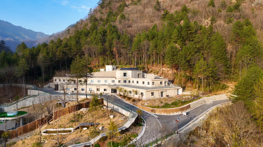 在秦岭大熊猫佛坪救护繁育研究基地科研楼屋顶,隆基绿能捐赠并建设了一座分布式光伏电站。