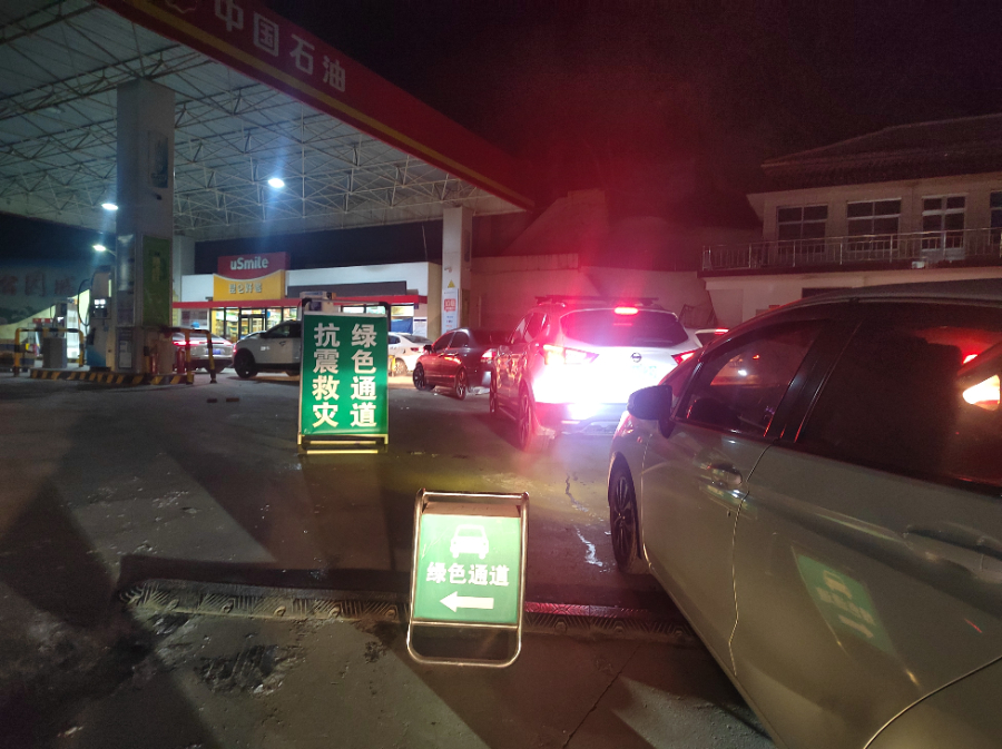 各家分公司连夜在主要加油站开设绿色通道,增派现场服务人员,优先确保消防、医疗等应急车辆加油。和甘肃大河家一河之隔的官亭加油站是公司距离震中最近的加油站,地震发生后就迎来了车流高峰,员工们顾不上联系家里人,纷纷在寒夜中坚守,直到凌晨5点,全力保障了油品供应。截至19日早上7时,青海销售官亭加油站供应油品10吨;海东分公司保供油品120吨,紧急追加油品百余吨。