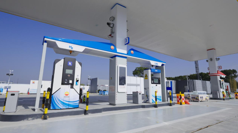 在站内大型车辆加能区,加柴油、加气、加氢一个都不能少