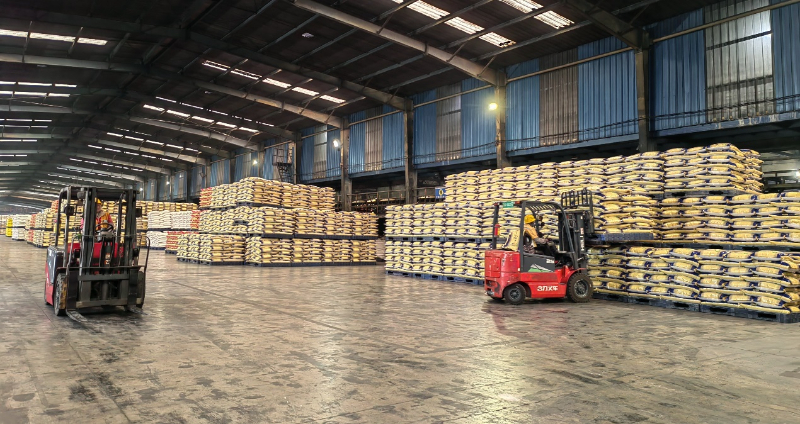 走进云天化天驰物流安宁物流园成品库房内,到处是一片繁忙景象。多辆叉车来回穿梭,将码放成垛的化肥产品运至火车货箱内,库房内近4000吨化肥产品即将装车发往各地的农资公司。