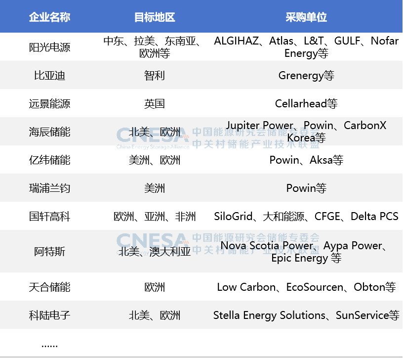 部分电池类和光储类企业典型海外订单情况(2024.H1)