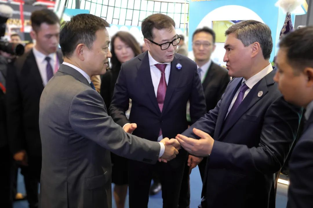 5日下午,蔡济波在出席哈萨克斯坦贸易和一体化部贸易政策发展中心展馆开馆仪式期间,拜会了哈萨克斯坦总理别克捷诺夫,双方就农业项目合作事宜进行了友好交流。