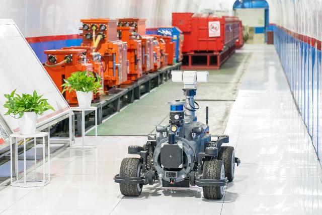 图为准东煤电公司智能巡检机器人在井下中央变电所进行巡检