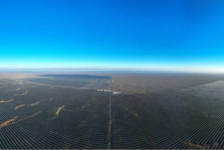图为国神准东煤电公司60万千瓦光伏项目,该项目是国家第二批“沙戈荒”大型风光基地——古尔班通古特沙漠基地的重要组成部分