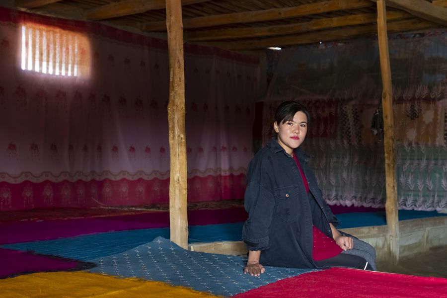 Kurbanhan Matrozi is seen at home in Darya Boyi Township, Yutian County of northwest China's Xinjiang Uygur Autonomous Region, Nov. 13, 2019. (Xinhua/Shen Bohan)
