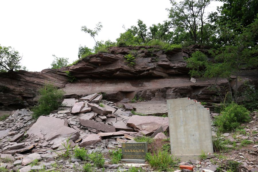 Photo taken on July 26, 2018 shows the site where dinosaur footprints were found, in Madigou village, Hebei Province, north China. (Provided to Xinhua)