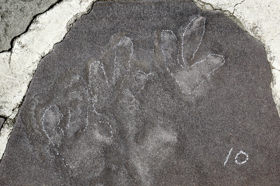 Photo taken on July 27, 2018 shows dinosaur footprints discovered in the Qing Dynasty (1644-1911) imperial resort in Chengde, Hebei Province, north China. (Provided to Xinhua)