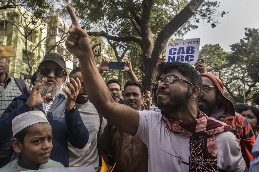 People participate in a protest against the new citizenship law in Kolkata, India, Dec. 19, 2019. (Xinhua/Tumpa Mondal)