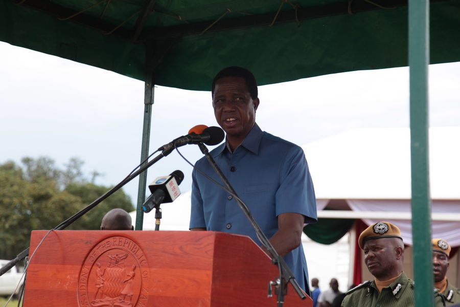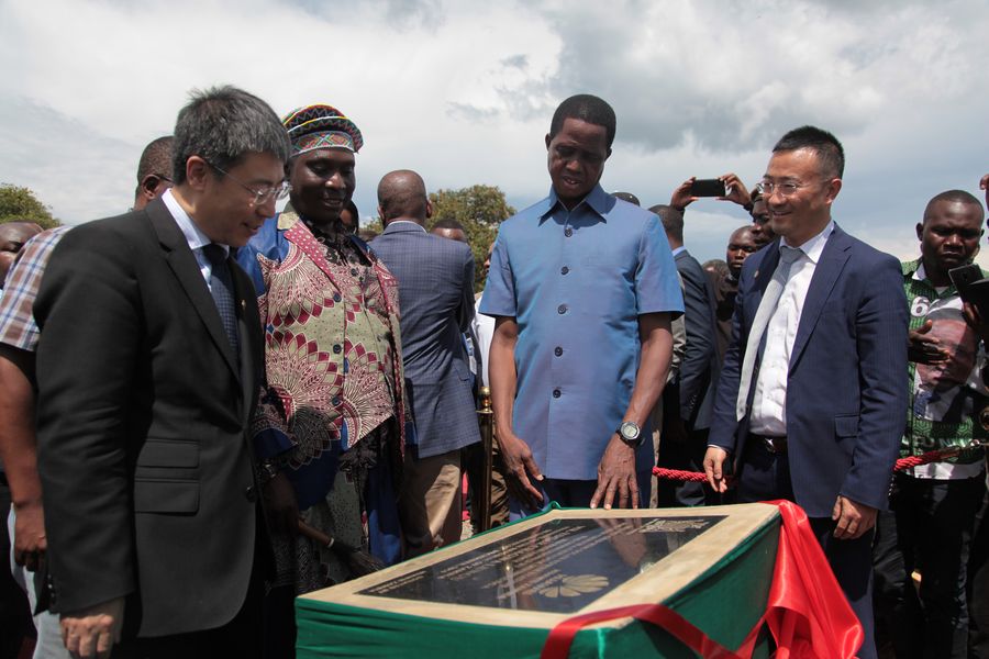 President of Zambia Edgar Lungu speaking at the ceremony in Mwinilunga District, in Zambia, Dec. 21, 2019. (Xinhua/Zhao Yupeng)