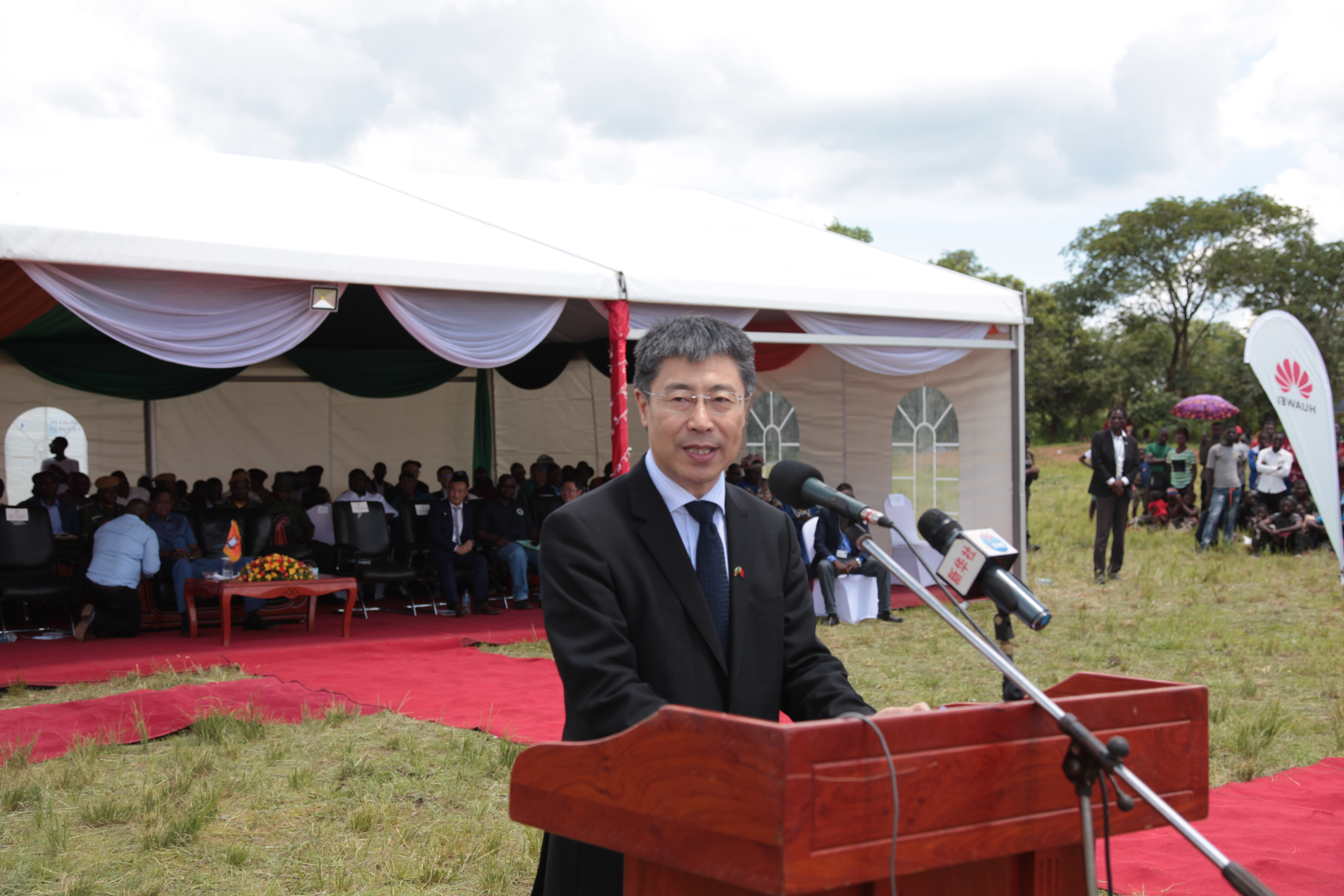 Chinese ambassador to Zambia Li Jie speaking at the ceremony in Mwinilunga District, in Zambia, Dec. 21, 2019. (Xinhua/Zhao Yupeng)