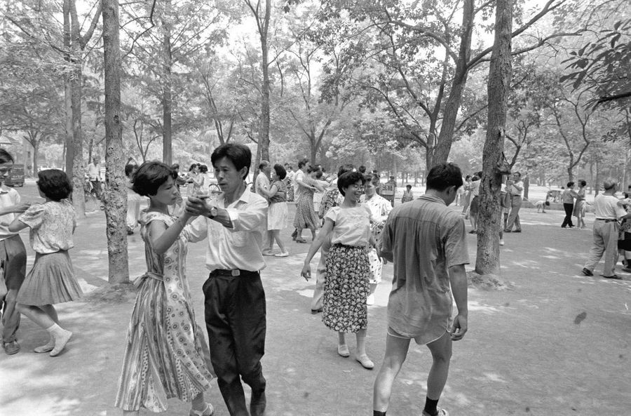 File photo taken in August 1994 shows people dancing in summer at the Wuchaomen Park in Nanjing, east China's Jiangsu Province. (Xinhua/Xu Peng)