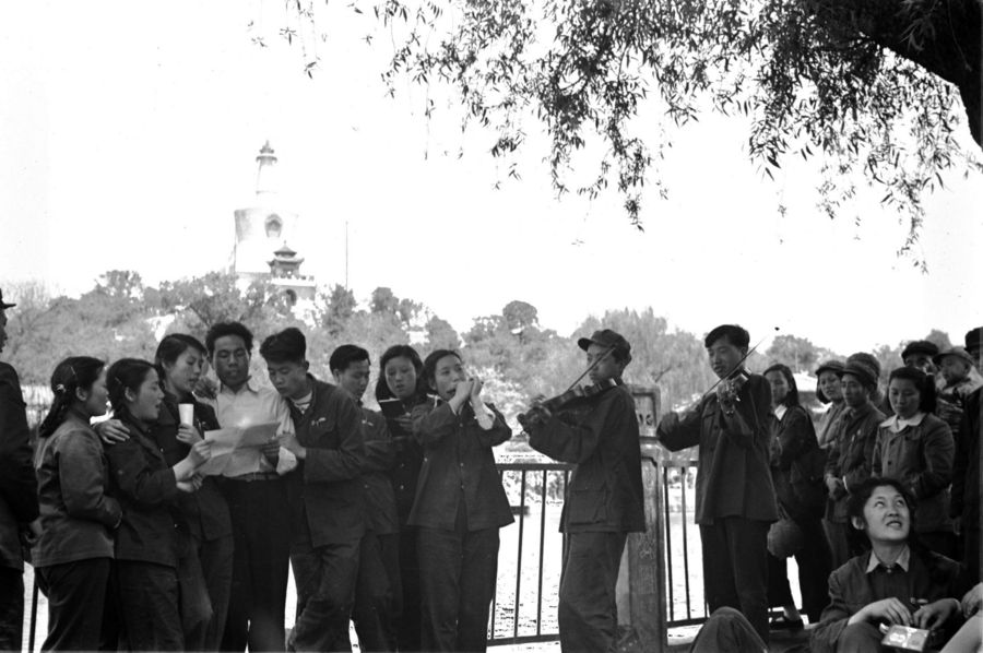 Photo taken on May 4, 1952 shows people singing and playing the music at the Beihai Park in Beijing, capital of China. (Photo by Cai Zhongzhi/Xinhua)