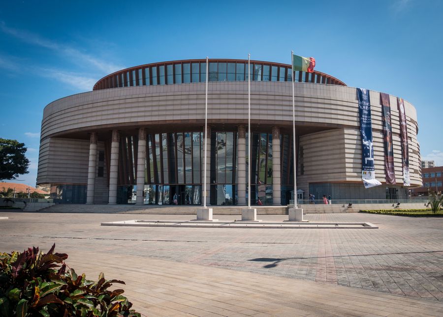 Photo taken on Dec. 6, 2019 shows an exterior view of the Museum of Black Civilizations in Dakar, Senegal. It's built with Chinese aid and inaugurated on Dec. 6, 2018. (Photo by Louis Denga/Xinhua)