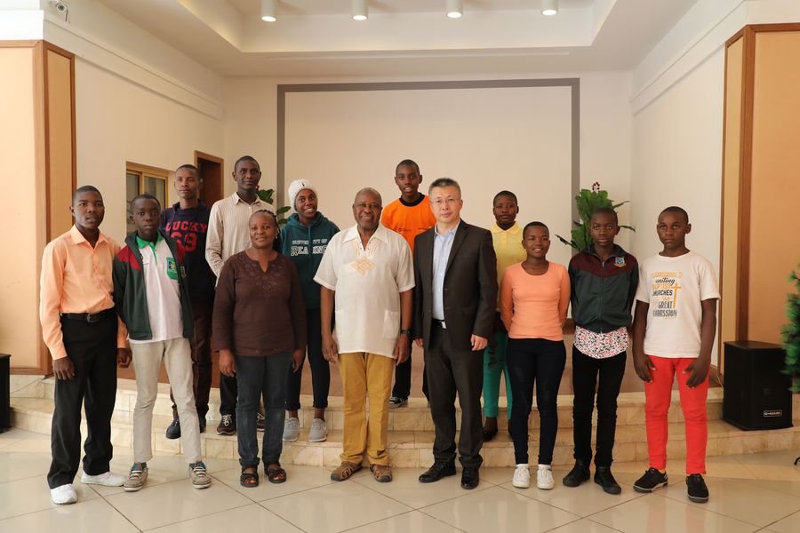 Ten students drawn from Cyclone Idai affected regions of Zimbabwe took group photos after coming back from China in Harare, Zimbabwe, Dec. 29, 2019. (Xinhua/Chinese Embassy in Zimbabwe)