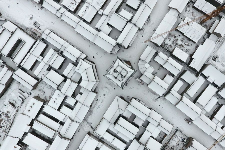 Aerial photo taken on Jan. 7, 2020 shows a snow view of Taiyuan, capital of north China's Shanxi Province. (Xinhua/Cao Yang)