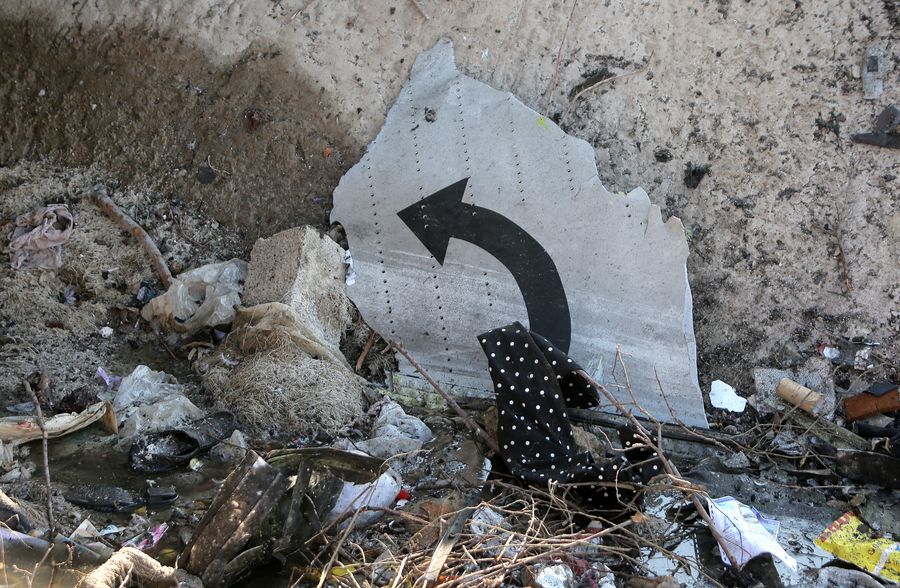 Photo taken on Jan. 8, 2020 shows a piece of debris of a Boeing 737 Ukrainian passenger plane at the air crash site in Parand district, southern Tehran, Iran. (Photo by Ahmad Halabisaz/Xinhua)