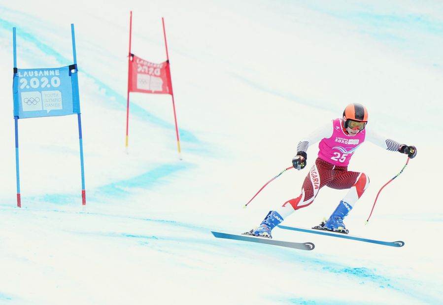 Konstantin Stoilov of Bulgaria competes during the Men's Super-G of Alpine Skiing at the 3rd Winter Youth Olympic Games (YOG) at Les Diablerets Alpine centre, Switzerland, on Jan. 10, 2020. (Xinhua/Wang Qingqin)