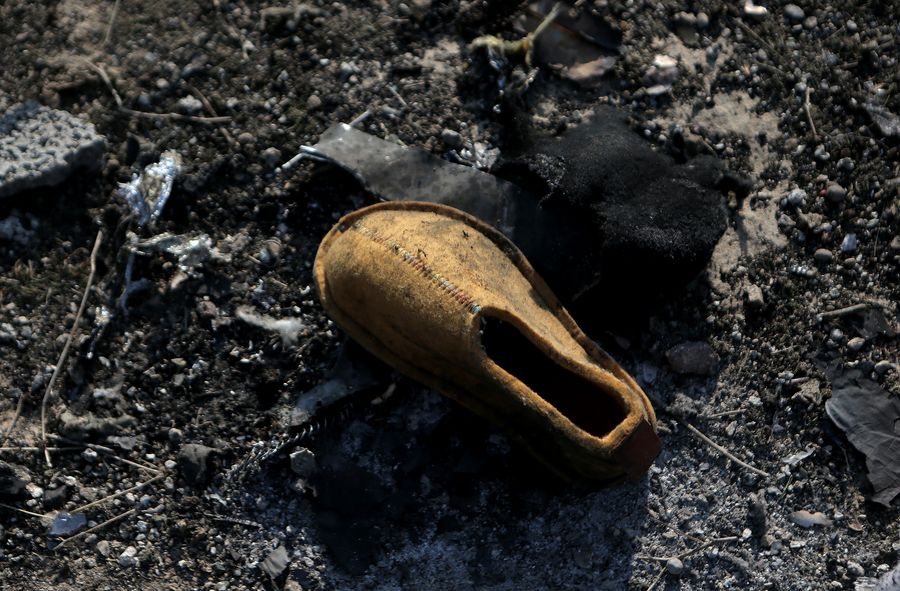 A shoe is seen at the air crash site of the Boeing 737 Ukrainian passenger plane in Parand district, southern Tehran, Iran, on Jan. 8, 2020. Iran's state TV on Saturday quoted the Iranian military as saying that it "unintentionally" shot down the Ukrainian jetliner on Wednesday, in which all the 176 passengers and crew members on board were killed. (Photo by Ahmad Halabisaz/Xinhua)