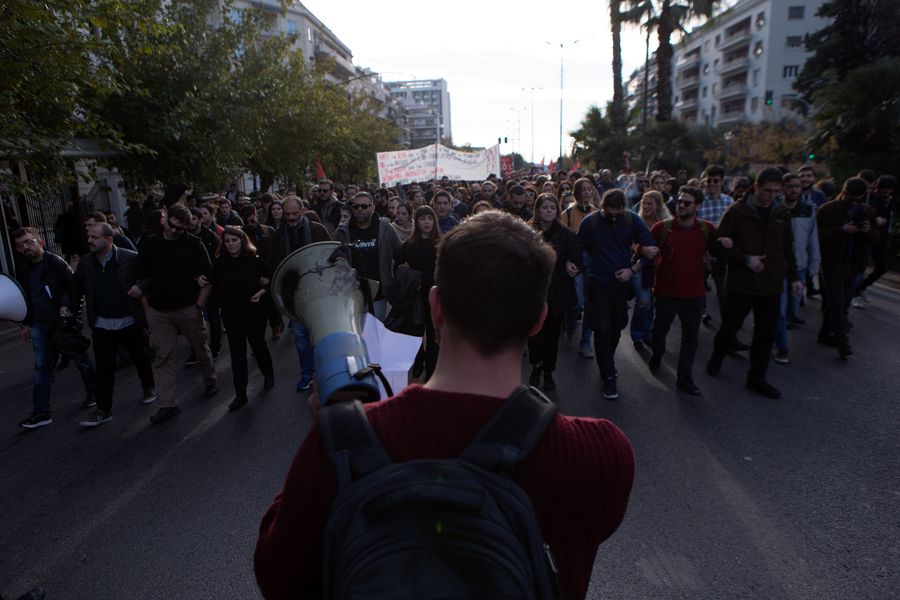 Protestors take part in a demonstration in Athens, Greece, on Jan. 11, 2020. Thousands of protesters marched in the center of Athens and Thessaloniki in northern Greece on Saturday, chanting slogans against the U.S. airstrike in Iraq which killed Iranian Major General Qassem Soleimani, Greek national news agency AMNA reported. (Xinhua/Marios Lolos)
