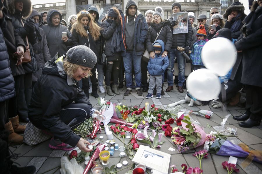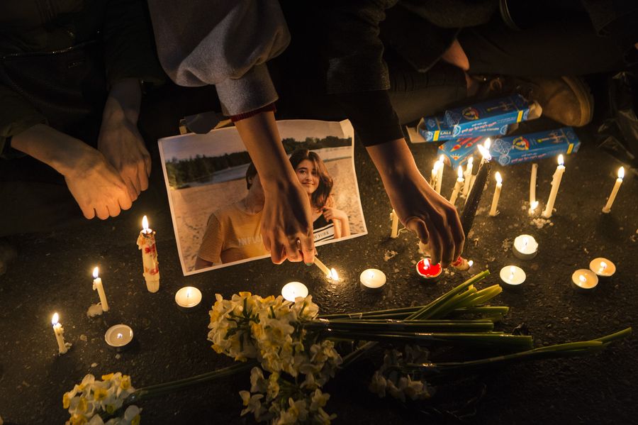 People attend a vigil outside Vancouver Art Gallery for victims of the Ukrainian passenger plane crash in Vancouver, Canada, Jan. 11, 2020. (Xinhua/Liang Sen)