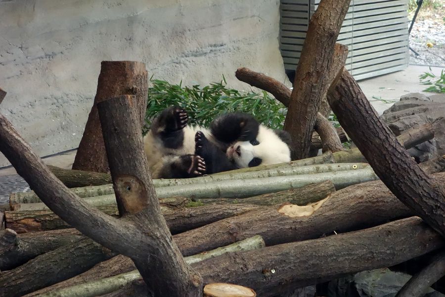 A panda cub plays as it comes out at its enclosure for the first time at the Berlin Zoo in Berlin, Germany, Jan. 30, 2020. Giant Panda "Meng Meng" gave birth to two baby pandas "Meng Xiang" and "Meng Yuan" on Aug. 31, 2019, to father Jiao Qing. (Xinhua/Wang Qing)