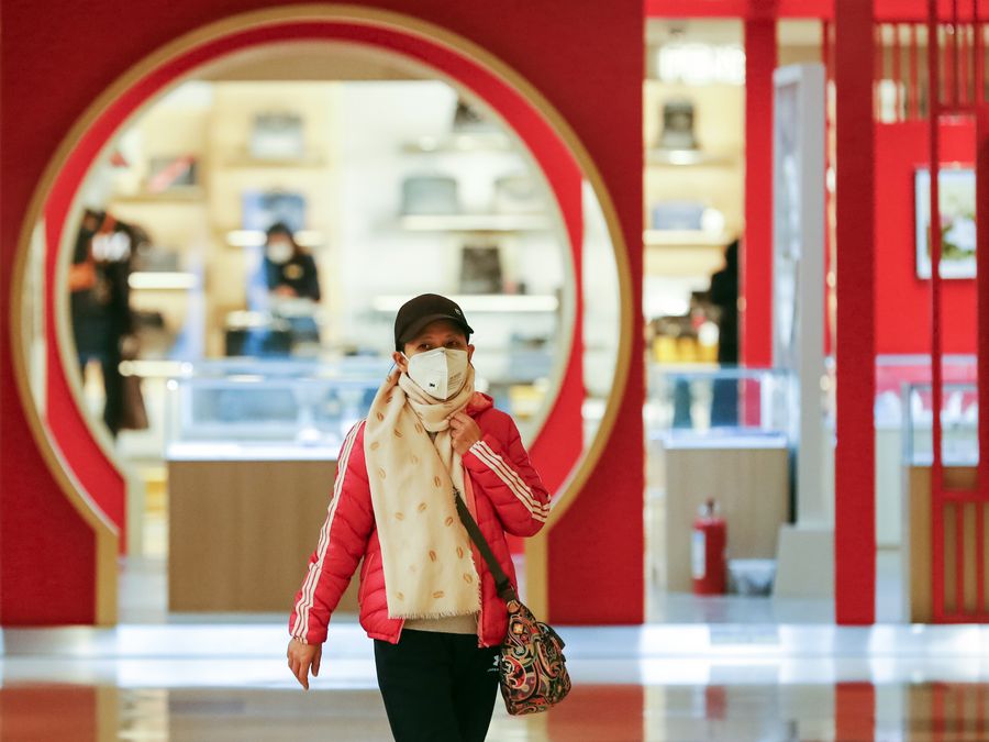 A woman walks in Guomao shopping mall in Beijing, capital of China, Feb. 10, 2020. Chinese authorities are carefully balancing efforts to control the novel coronavirus epidemic and minimize its impact on the economy as millions of people head back to work Monday after an extended holiday. (Xinhua/Shen Bohan)