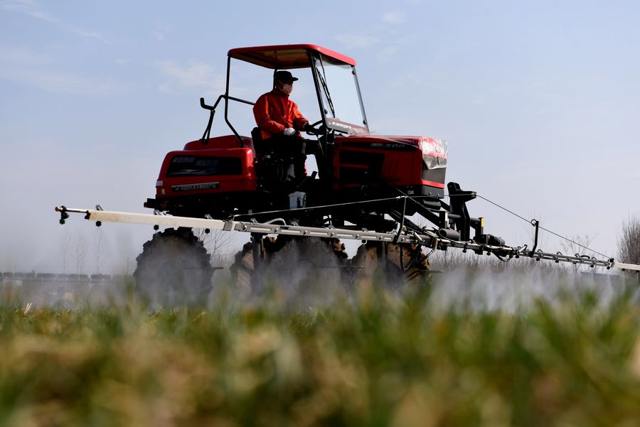 A villager works in fields in Matou Township of Tancheng County in Linyi City, east China's Shandong Province, Feb. 10, 2020. (Photo by Fang Dehua/Xinhua)■