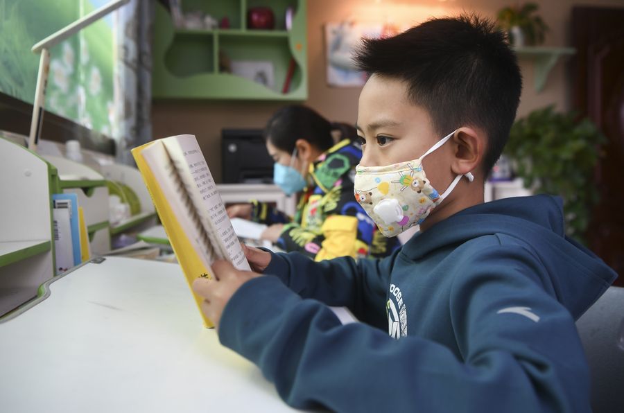 Wang Congyang reads at home as local education administration advises students to make fewer trips outside and avoid crowds amid novel coronavirus outbreak in Yunyang County, southwest China's Chongqing, Feb. 6, 2020. (Xinhua/Wang Quanchao)