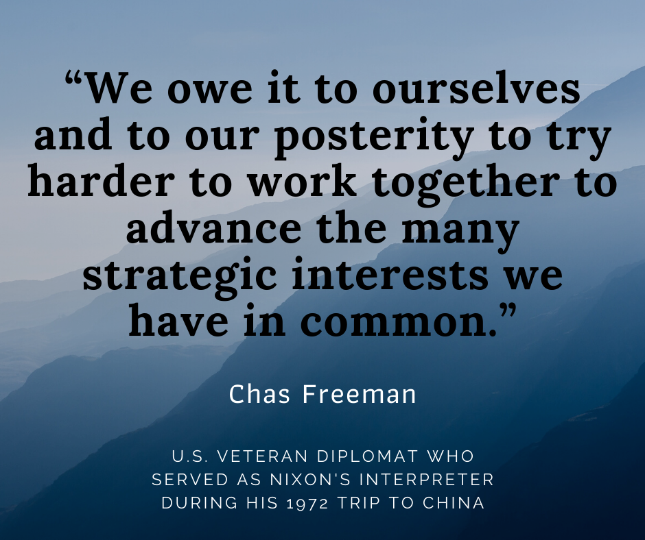 As U.S. veteran diplomat Chas Freeman, who served as Nixon's interpreter during his 1972 trip to China, has stressed, "we owe it to ourselves and to our posterity to try harder to work together to advance the many strategic interests we have in common."