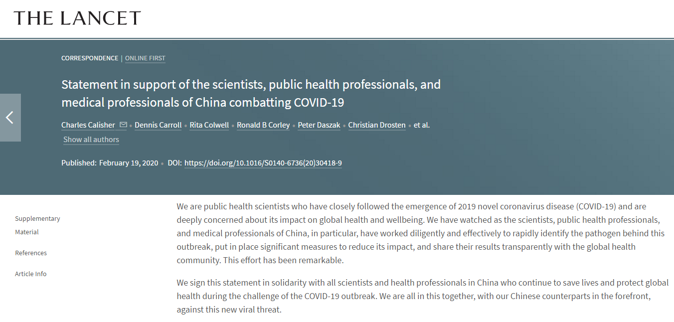In the statement, the scientists also said they stand together to strongly condemn conspiracy theories suggesting that the novel coronavirus does not have a natural origin.