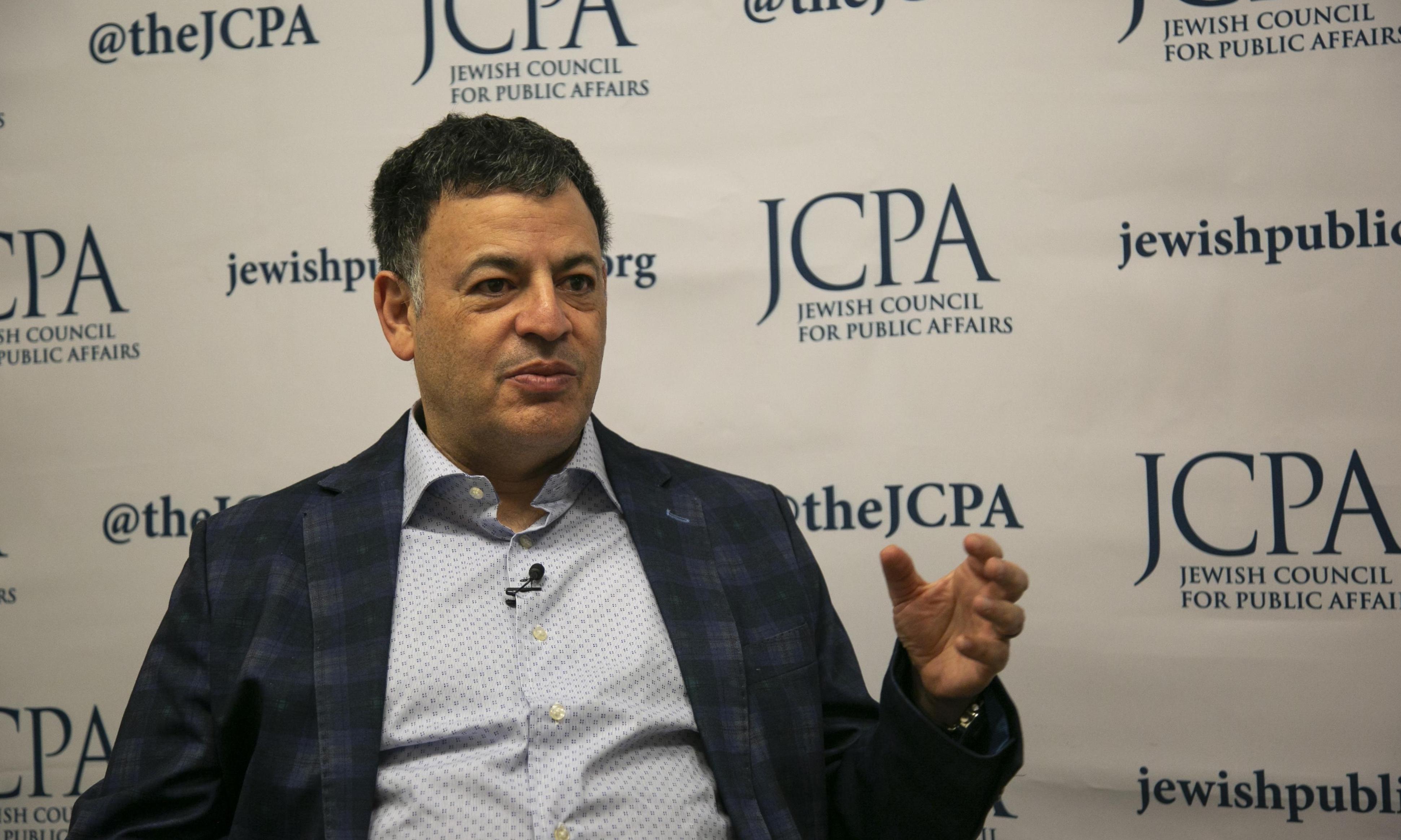 David Bernstein, president and CEO of the Jewish Council for Public Affairs (JCPA), speaks in an interview with Xinhua in New York, the United States, Feb. 25, 2020. (Xinhua/Guo Peiran)