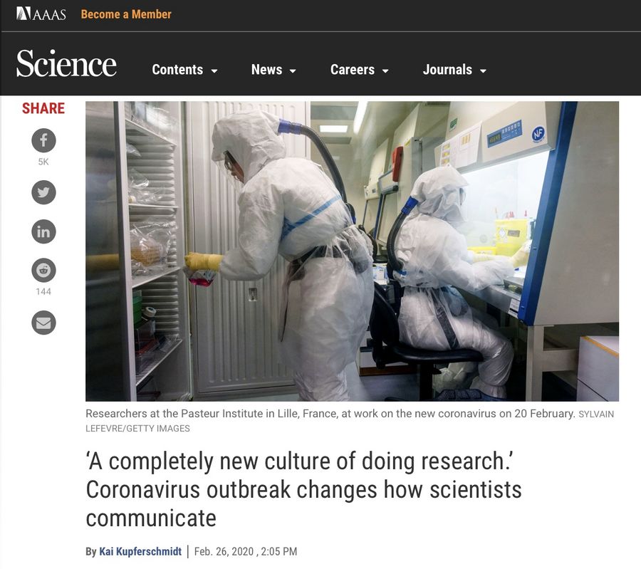 This is just one example of how the COVID-19 outbreak is transforming how scientists communicate about fast-moving health crises. A torrent of data is being released daily by preprint servers that did not exist a decade ago, then dissected on platforms such as Slack and Twitter, and in the media, before formal peer review begins.
