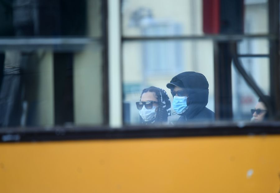 People wear face masks in Milan, Italy, Feb. 26, 2020. At least 650 coronavirus cases have been confirmed in Italy. (Photo by Daniele Mascolo/Xinhua)